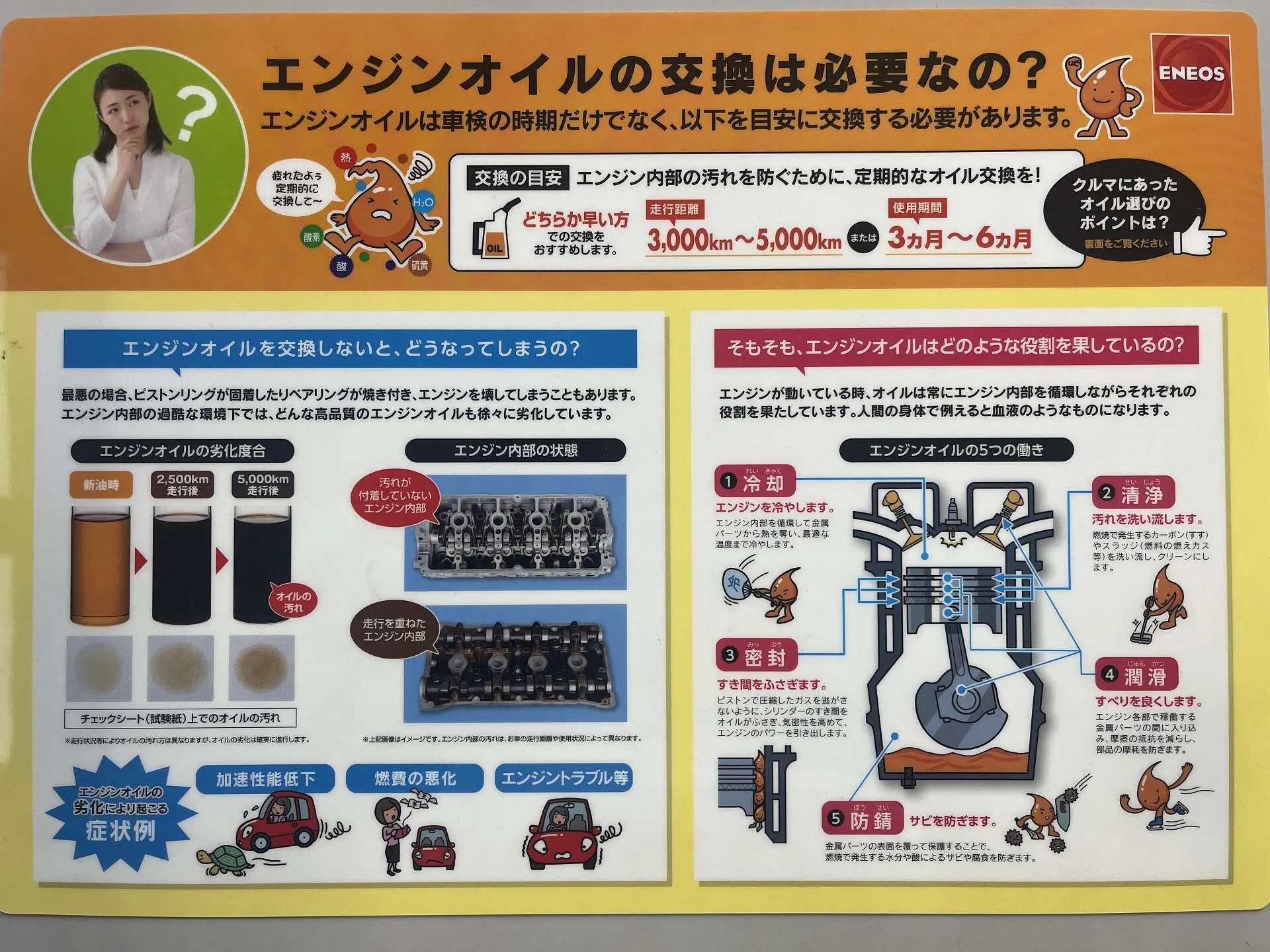 エンジンオイルは車検の時期だけでなく、3000Km~5000Kmを目安に交換をおすすめします