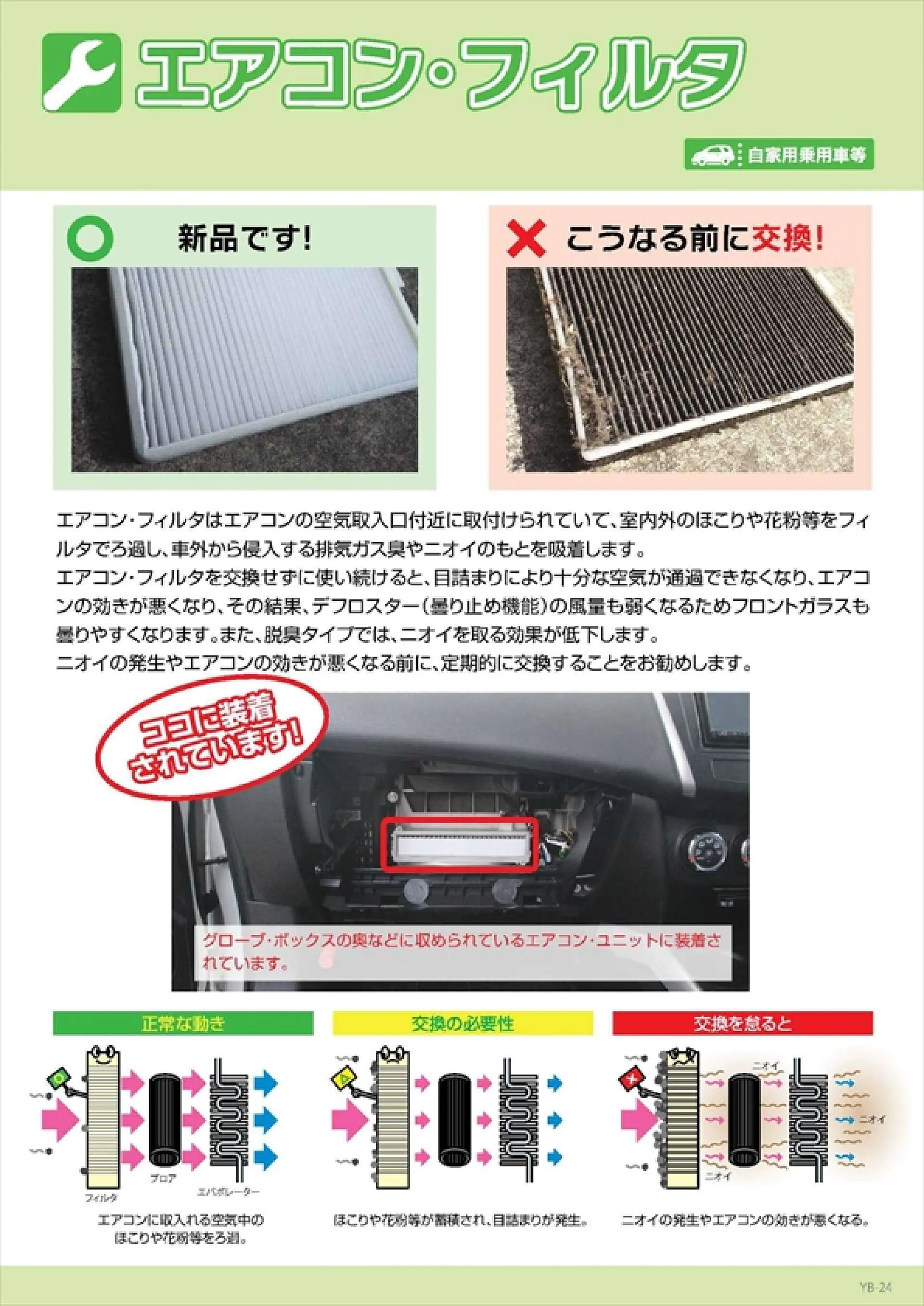 ニオイの発生やエアコンの効きが悪くなる前に、定期的に交換することをお勧めします。
