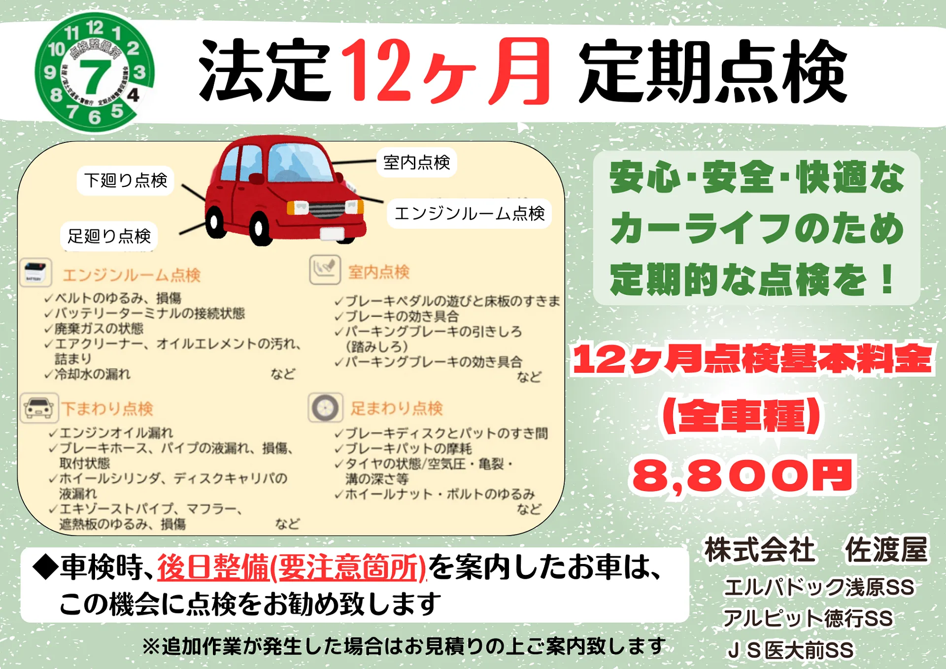 12ヶ月点検は、法律で義務付けられた**「法定点検」です。