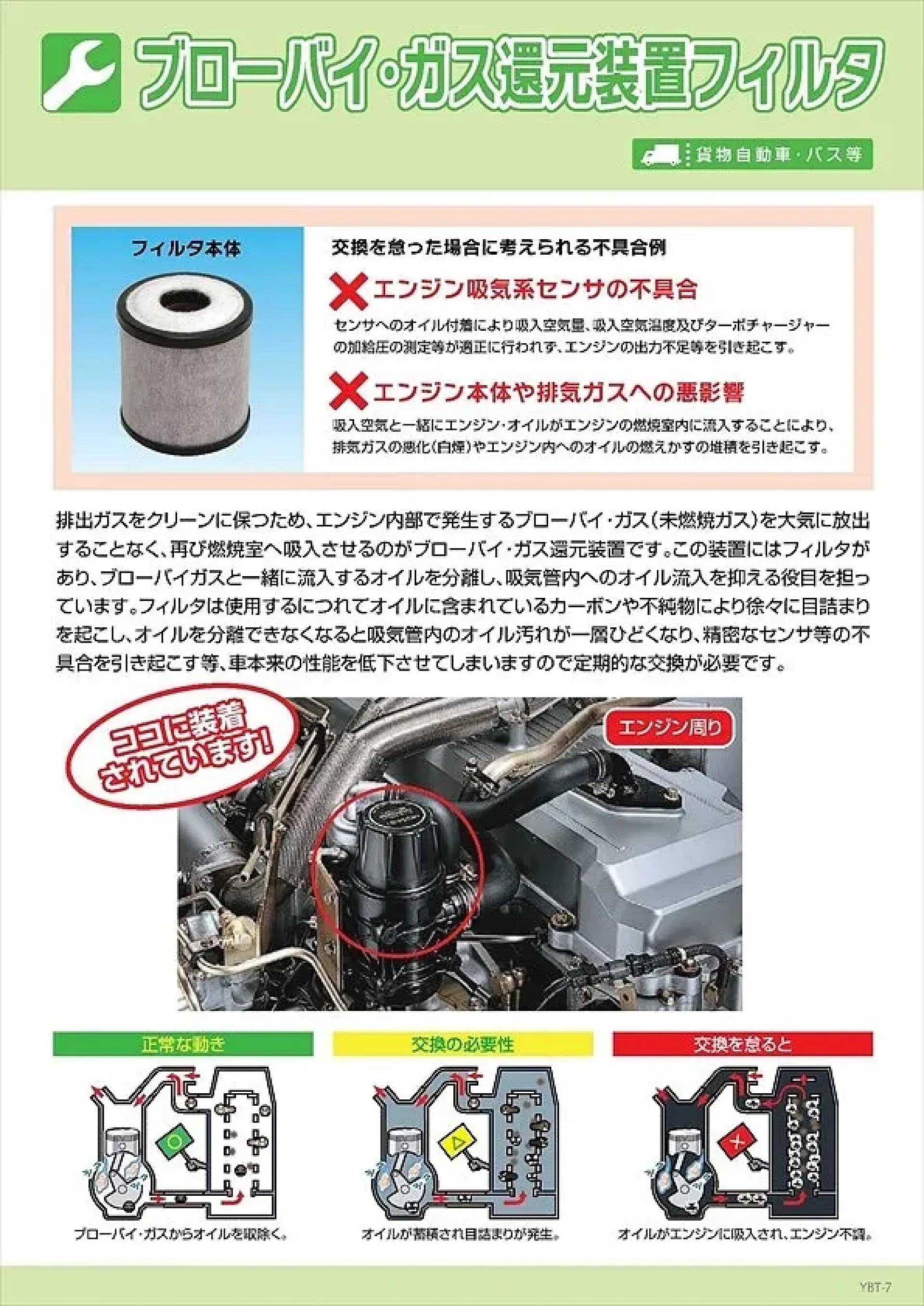エンジンの保護:フィルターが詰まるとクランクケース内の圧力が上昇し、エンジンオイル漏れやシールの破損を招きます。