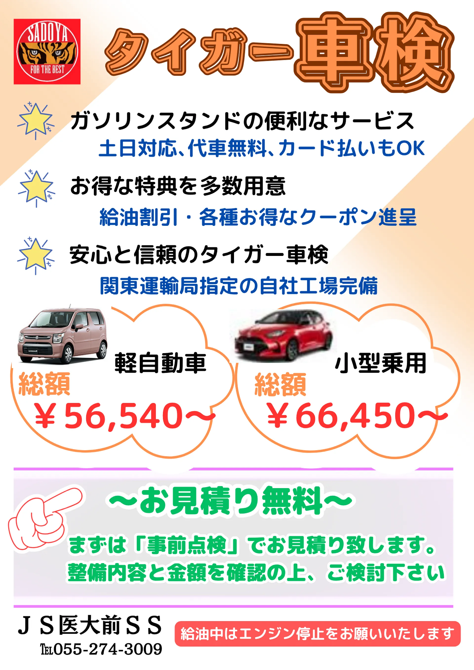 南アルプス市 タイガー車検(中央市JS医大前SS) 佐渡屋